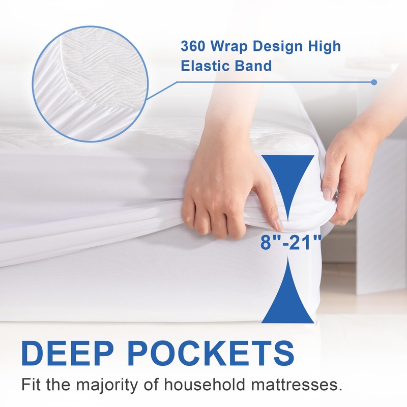 - 360° Deep Pocket Fit: The fitted mattress pad's 360° deep pocket design fully encases your mattress, preventing it from slipping or moving around. This provides comprehensive protection and keeps your mattress looking pristine.