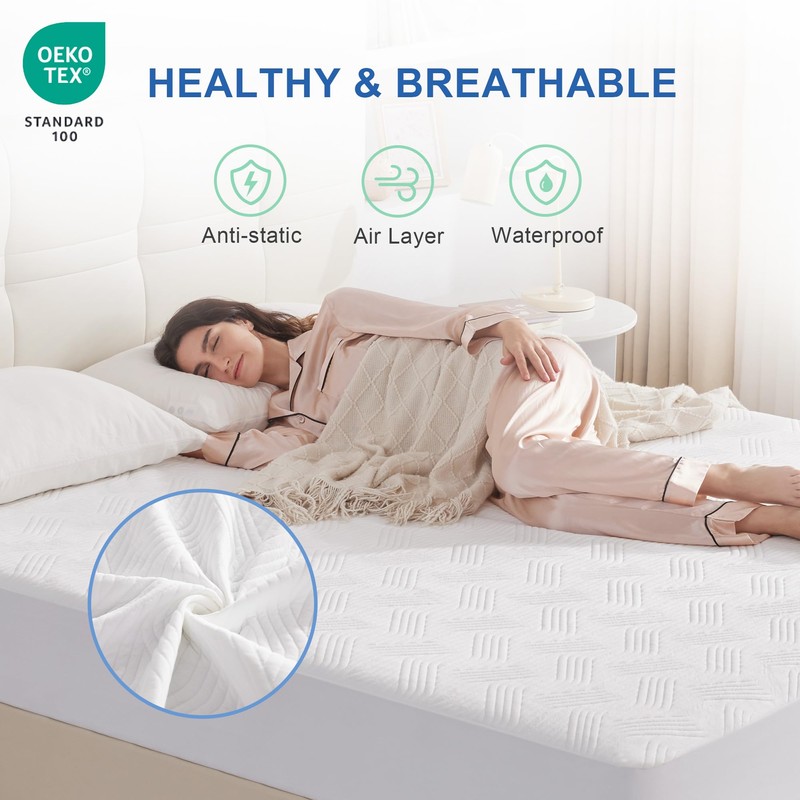 - Soft, Breathable, Quiet: Made from excellent, quiet, and breathable 3D air fabric that is also anti-static, this mattress protector fitted sheet ensures a superior sleep experience. The soft touch and reduced static make for a comfortable night's rest.