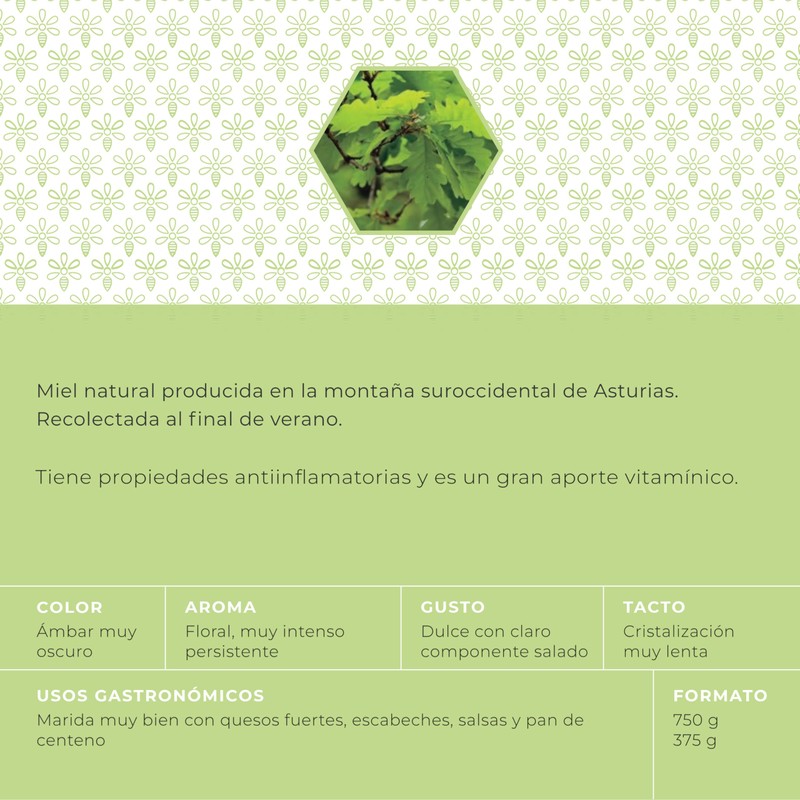 - 🌲 Wilde Tiefe aus den asturischen Bergen: Dieser asturische Eichenhonig wird am Ende des Sommers in den südwestlichen Bergen Asturiens gesammelt und fängt den Reichtum des Waldes ein. Seine sehr dunkle Bernsteinfarbe und sein süßer Geschmack mit einer deutlich salzigen Komponente spiegeln den robusten Charakter seiner Herkunft wider.