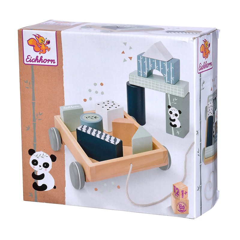 Eichhorn - Bauwagen mit 11 Bausteinen, Nachziehspielzeug, 12 teilig, 18x17,5 cm groß, ab 1 Jahr 100003800
