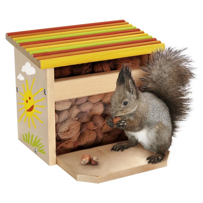 - Eichhorn Wooden feeder - This cute little squirrel feeder is an eye-catcher in itself, but it becomes even more beautiful when the house is painted and decorated. The set includes the individual parts of the feeder as well as the matching screws, brushes and paints.