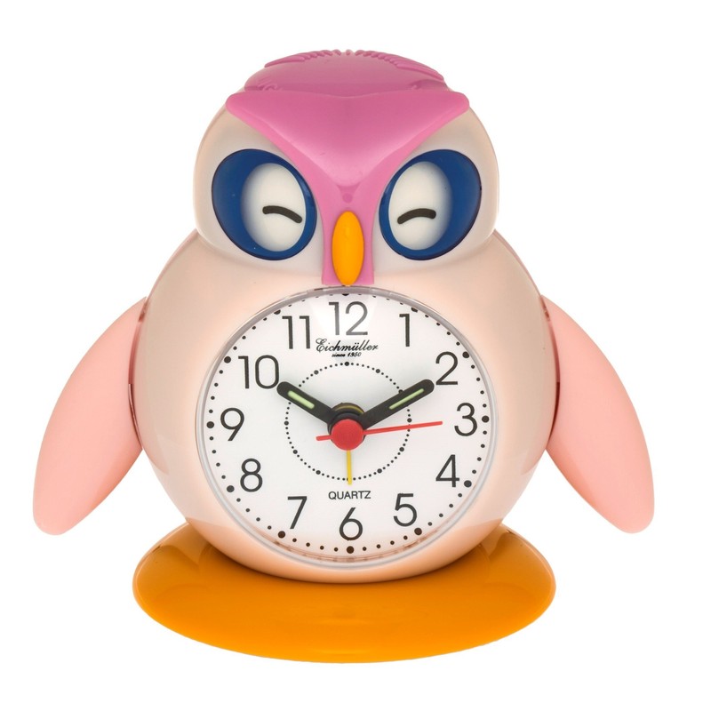 Eichmüller Kinderwecker Eule rosa Analogwecker mit Alarm Snooze und Licht