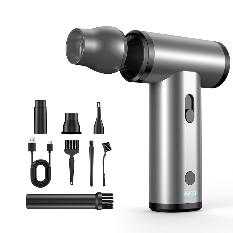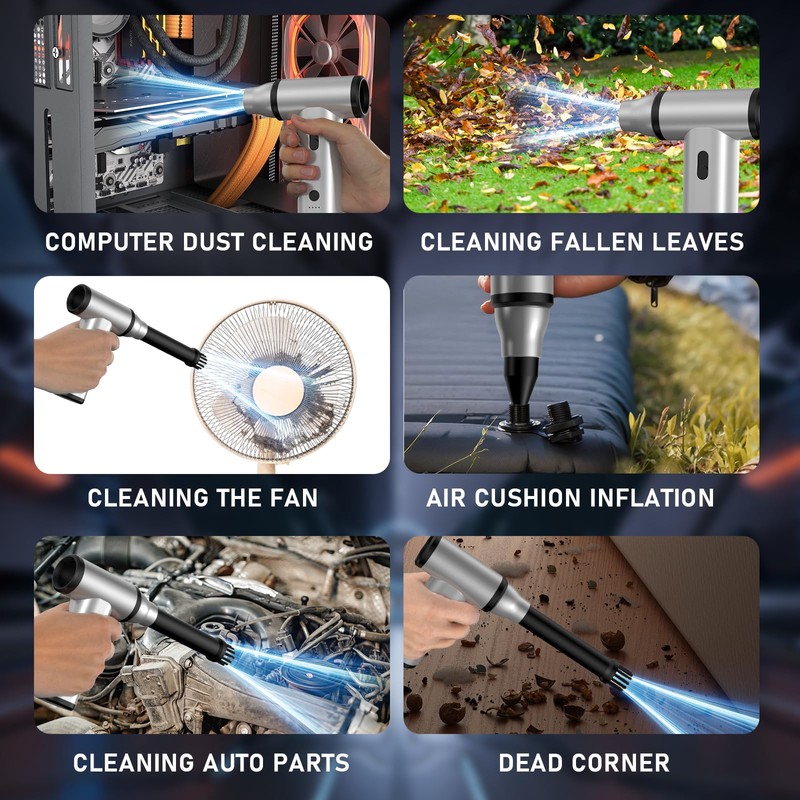 - 【Bürstenloser Hochgeschwindigkeitsmotor】 Dieser elektrisches staubgebläse ist mit einem bürstenlosen Hochgeschwindigkeitsmotor mit einer Höchstgeschwindigkeit von 110.000 U/min und einer maximalen Luftgeschwindigkeit von 120 m/s ausgestattet. Seine leistungsstarke Leistung beseitigt mühelos Staub auf Tastaturen, Großrechnern, Jalousien und elektronischen Bauteilen, entfernt Blätter im Garten und bläst sogar Schwimmringe, aufblasbare Betten, aufblasbare Kissen und mehr auf.