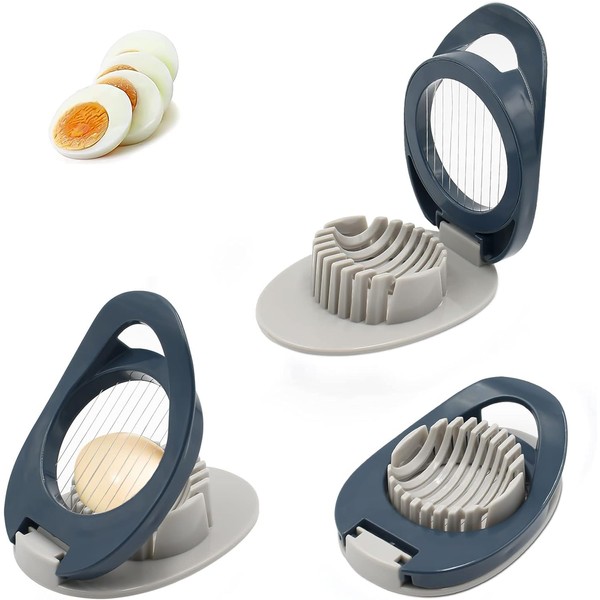 Eierschneider, Profi Eierteiler Schneiddrähte aus Edelstahl Spülmaschinenfest, 2 In 1 Eischneidewerkzeug,zum gleichmäßigen Schneiden von gekochten Eiern, Kiwi-Banane und Erdbeere, Weiche Speisen(Blau)