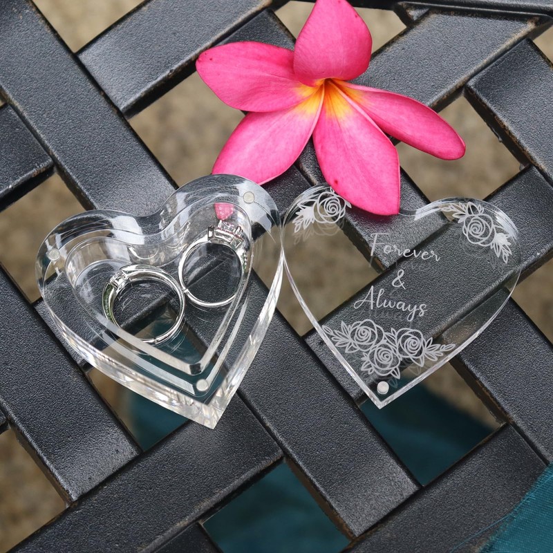 EIFLR Engraved Wedding Ring Boxes for Ceremony Acrylic Ring Bearer Box for Wedding Proposal Engagement (Heart-Shaped C)
