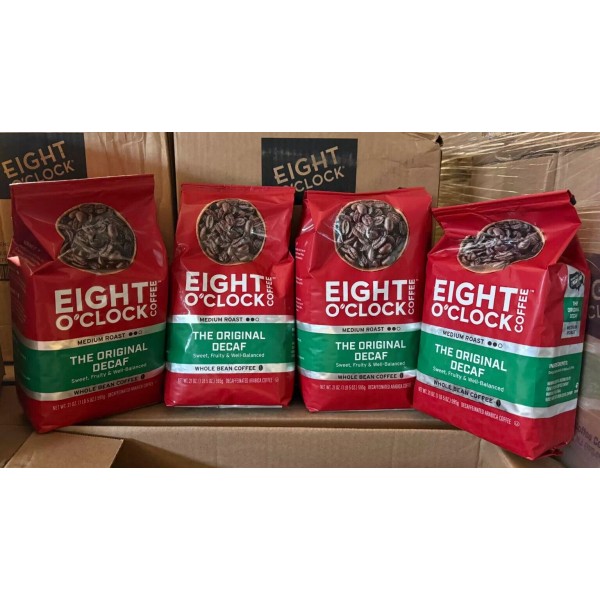 Eight O'Clock Coffee The Original Decaf 21 Ounce Medium Roast Whole Bean 4pk