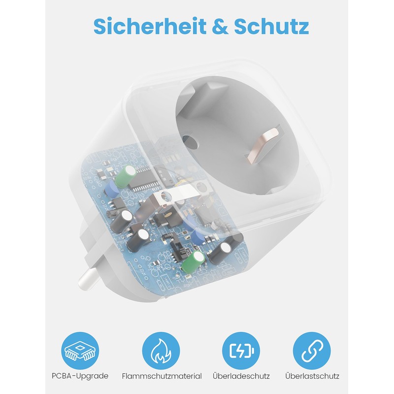 • Energieverbrauch und Kostenabsch?tzung: Unsere WLAN Steckdose erm?glicht es Ihnen, den Energieverbrauch Ihrer Ger?te zu 1berwachen und Ihre Stromkosten abzusch?tzen. Diese Funktion hilft Ihnen, informierte Entscheidungen 1ber den Energieverbrauch zu treffen und entsprechend zu budgetieren.