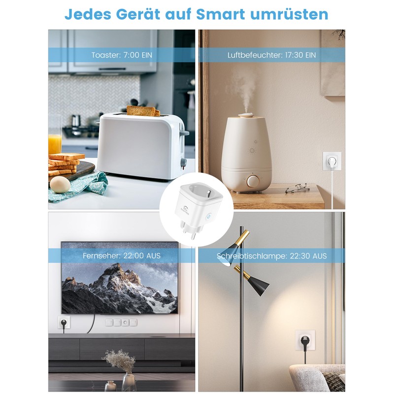 • Timer & Zeitpl?ne: Vereinfachen Sie Ihren t?glichen Ablauf und sparen Sie Energie, indem Sie personalisierte Zeitpl?ne und Timer f1r Ihre Ger?te 1ber die WLAN Steckdose einrichten. Automatisieren Sie den Betrieb Ihrer Ger?te, so dass sie zu spezifischen Zeiten ein- oder ausgeschaltet werden, die Ihren Bed1rfnissen entsprechen.