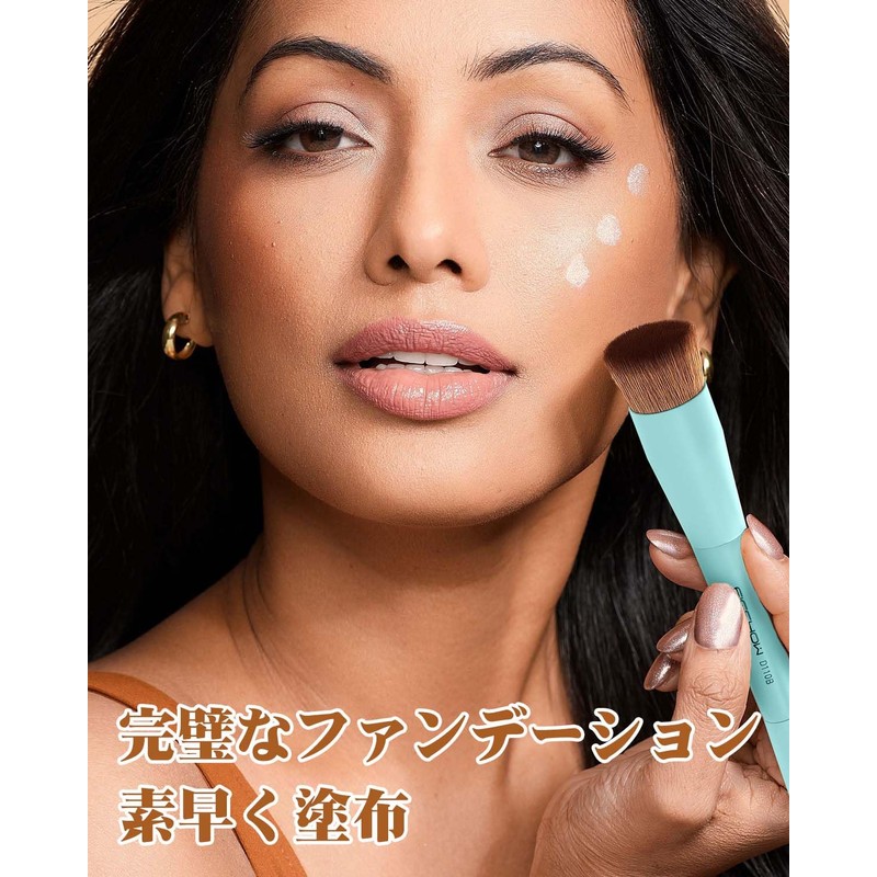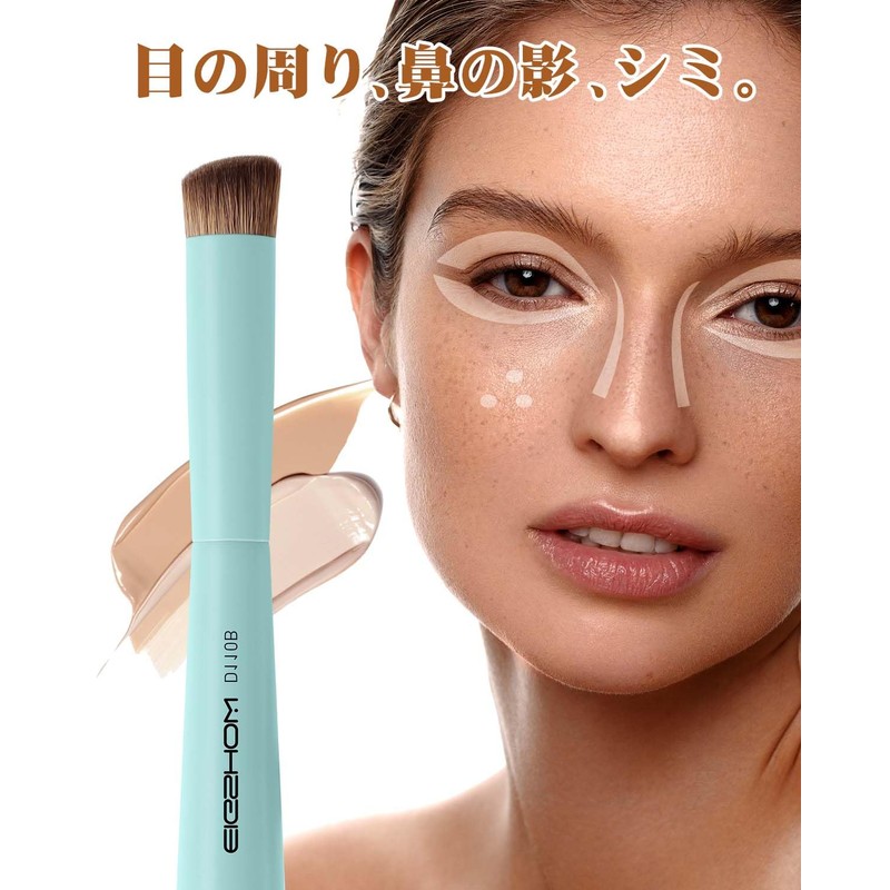 EIGSHOW Foundation Brush, Undereye Concealer Brush Oblique Concealer Brush Kabuki Brush, Flat Foundation Makeup Brush for Liquid, Cream Application (D110B Cyan)