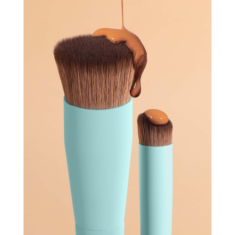 - The biggest appeal of the flat top kabuki foundation brush is that you can get perfectly soft and moist skin without pores. Perfect for smoothing liquid or powder foundation against your skin to perfection as pictured