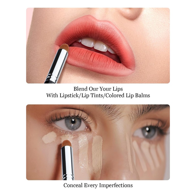 - 高効率コンシーラー: このリップ ブラシの丸い形状のブラシ ヘッドは効果的に隠すことを可能にし、唇をより均一で自然に見せながら、唇の汚れ、線、その他の欠陥を隠します。