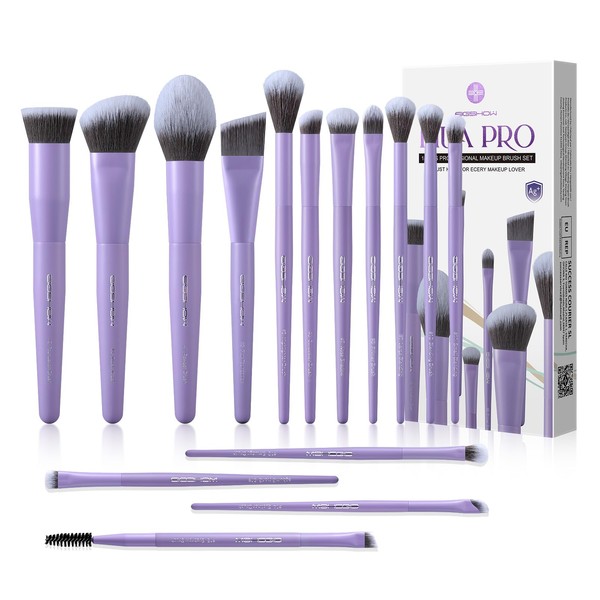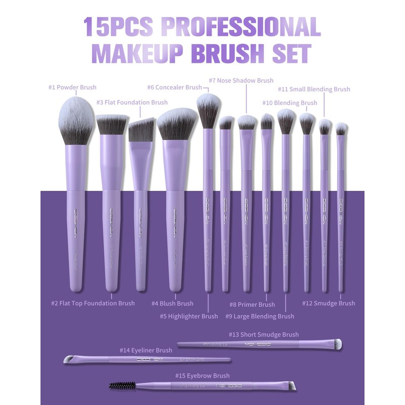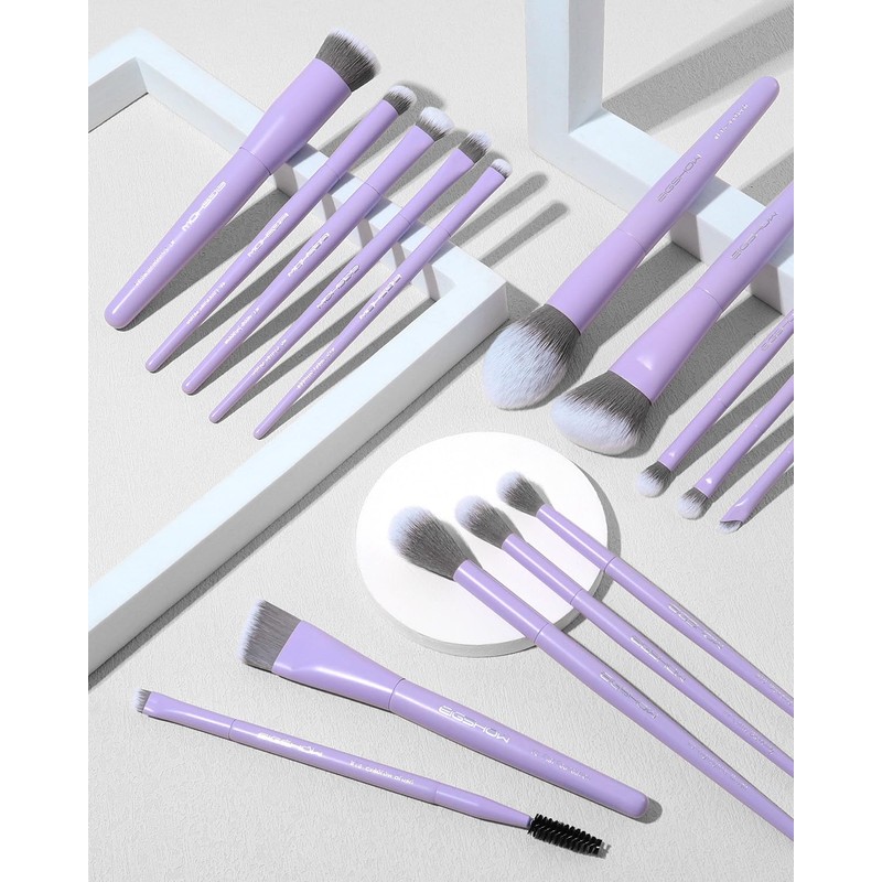 EIGSHOW Makeup Brushes Set, 15Pcs Professional Make Up Brush with Silver Ion Bristles for Foundation Powder Blush Highlighter Concealer Eyeshadow Eyeliner, Travel Gift Set (Matte Purple)