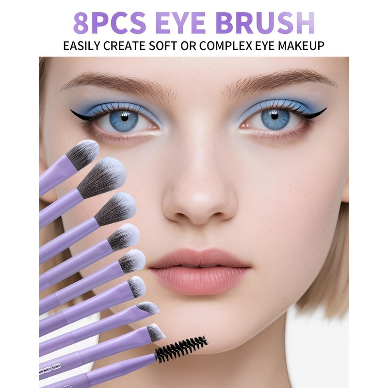 - 𝟴-𝗣𝗶𝗲𝗰𝗲 𝗣𝗿𝗲𝗰𝗶𝘀𝗶𝗼𝗻 𝗘𝘆𝗲 𝗕𝗿𝘂𝘀𝗵𝗲𝘀 𝗳𝗼𝗿 𝗔𝗻𝘆 𝗟𝗼𝗼𝗸: From sharp liner to seamless smoky eyes, this pro-level eye brush set has every tool to define, blend, and detail like a makeup artist. With 8 targeted brushes for lids, crease, brows, and lash lines, you’ll master everything from soft glam to bold drama with absolute control.