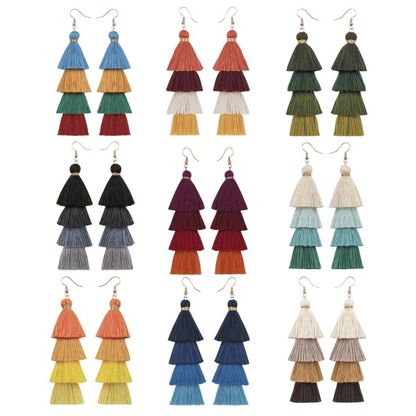 • Unique Design---9 Pairs different color tassel earrings, with affordable price. To meet your clothing requirements on different occasions, let you outstanding in crowd.