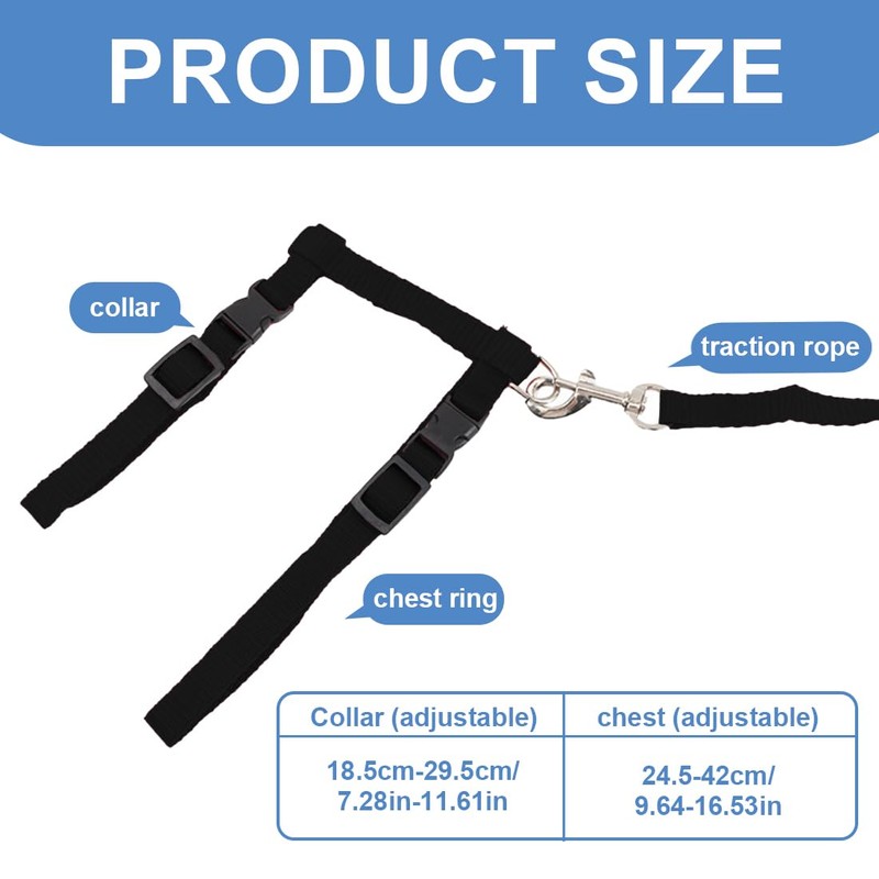Adjustable size: collar: minimum circumference 18cm, maximum circumference 30cm; chest ring: minimum circumference 22cm, maximum circumference 36cm. Large adjustment range, suitable for many types of cats.