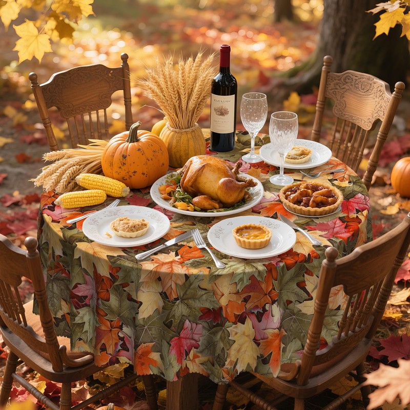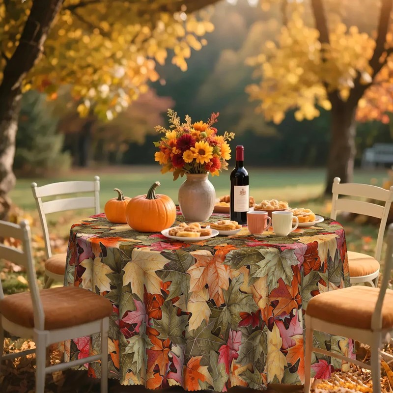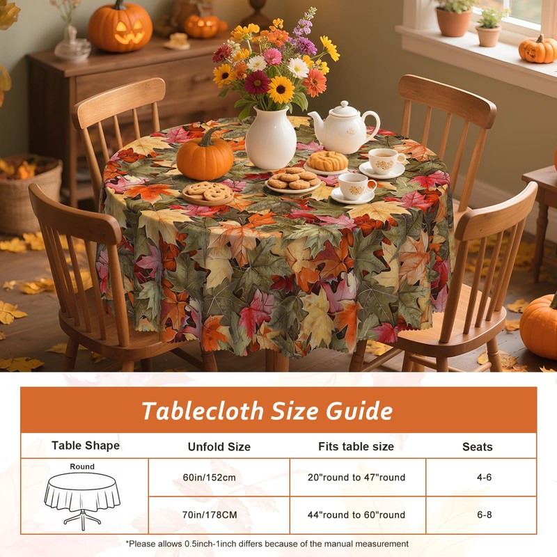 Eikione Fall Tablecloth 70 Inch, Maple Leaf Table Cloth, Waterproof, Wrinkle Free Polyester Table Cover for Autumn Picnics, Halloween Dining Decorations