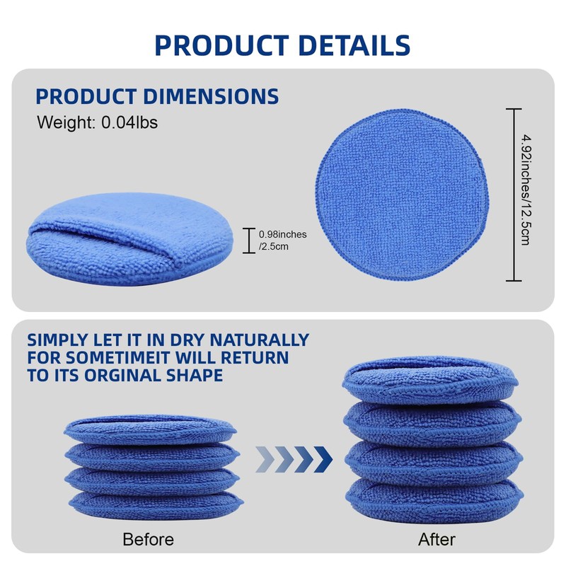 - Microfiber Car Wax Applicator Pads – Made with soft high-density foam and a microfiber surface to prevent scratches while absorbing wax smoothly for a flawless, streak-free finish