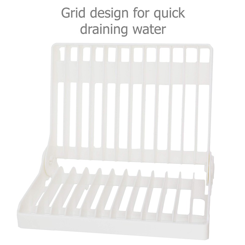 - [SPACE SAVING] A great choice for small apartment kitchens, this compact dish drain collapses down to two-fifths of its original size for easy storage in a cabinet or under the sink when you're finished
