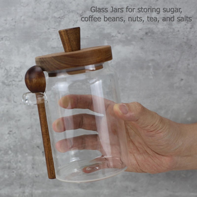 - 【Convenience at Its Best】Each jar comes with a wooden spoon that hangs conveniently on the side, making it easy to scoop out sugar, coffee beans, nuts, tea, salts, or bath salts.