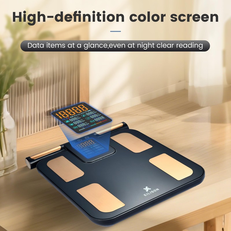 EILISON 8-Electrode Body Fat Scale with BIA Technology, Digital Bathroom Scale Full Body Composition Analyzer with 32 Metrics, Smart BMI Weight Scale with Bluetooth App, Touchscreen, 396lbs (Black)