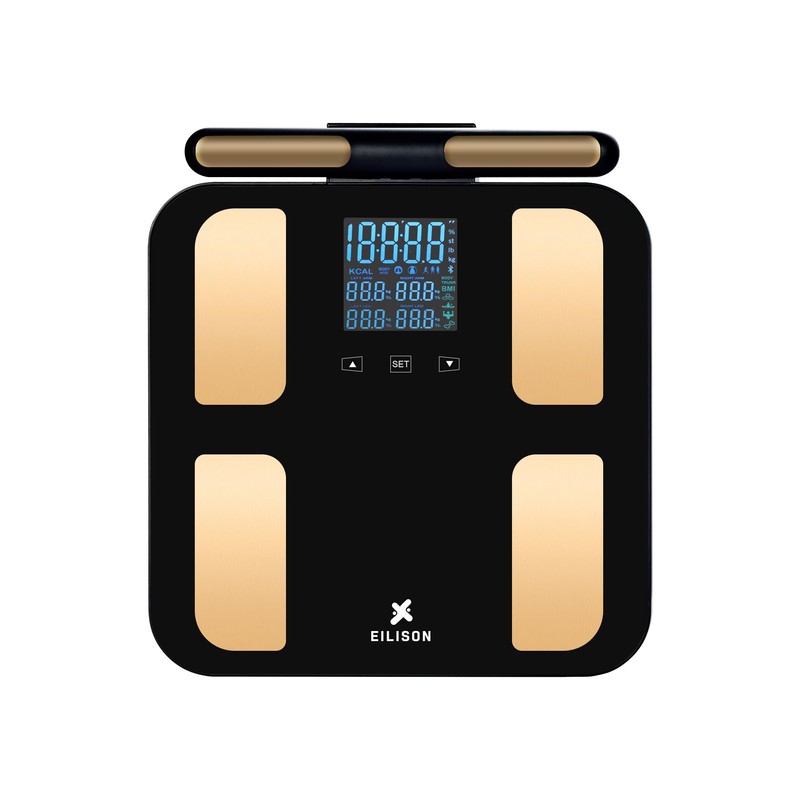 EILISON Digital Bathroom Scale with 8 Electrodes BIA Technology High-Precision Smart Body Fat Analyzer BMI Scale, Large Color Touchscreen, Bluetooth App Sync for 23 Metrics, 396LBS Capacity (Black)