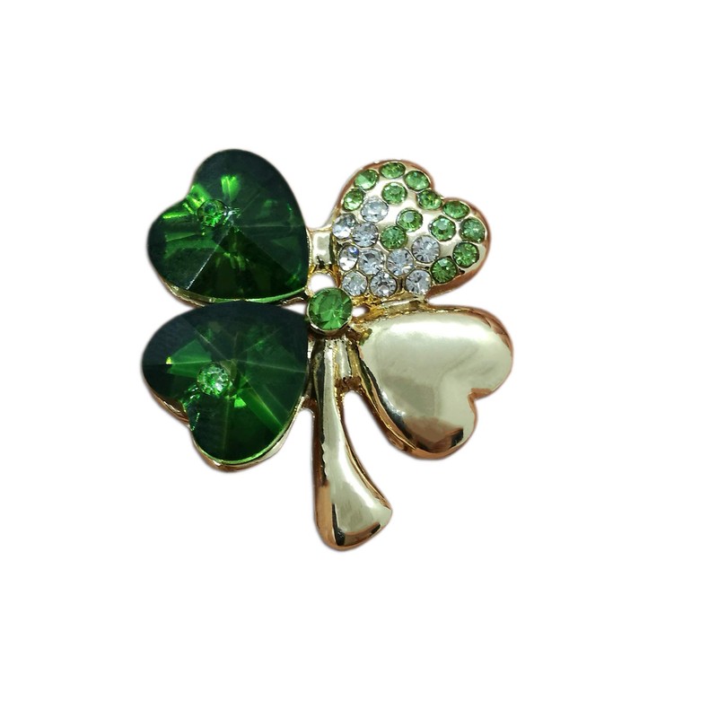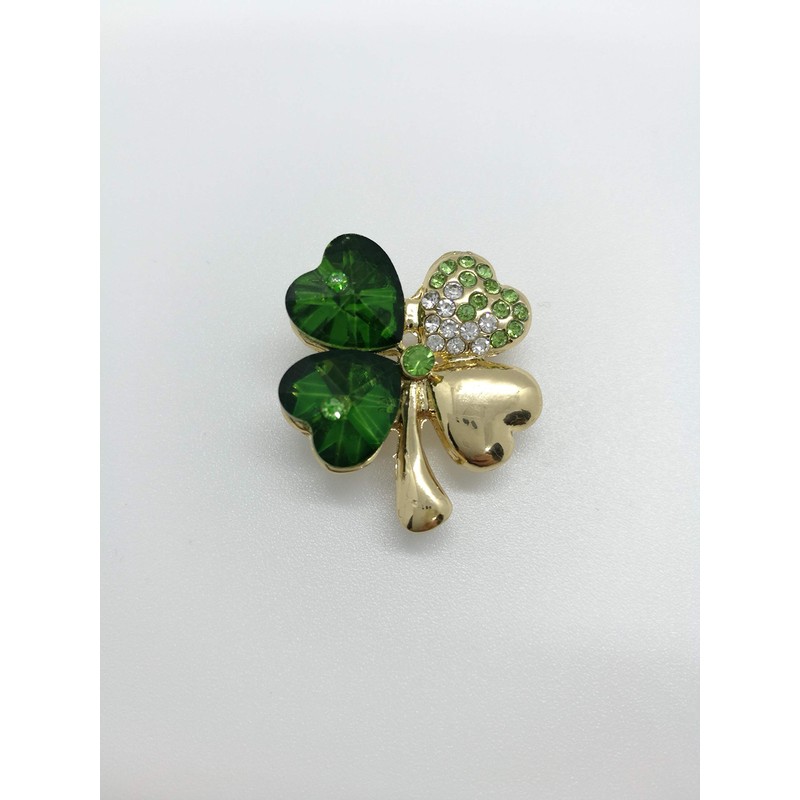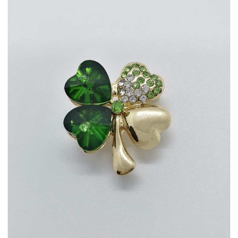 Green Four-leaf clover brooch in shape of Hearts. Lucky Four-leaf clover brooch is very shiny and beautiful to wear with you for protection. They are a perfect gift for any women & man or nice party accessory add on