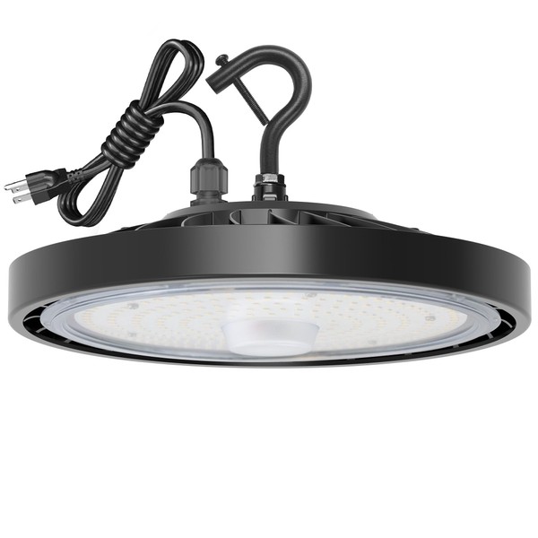 Introducing our UFO LED High Bay shop Light, the perfect lighting solution for your garage, workshop, or any high-ceiling area. With its 150W power and 24000LM brightness, this light provides exceptional illumination, ensuring optimal visibility for your tasks. The 5000K color temperature offers a bright white light, creating a well-lit environment.Designed specifically for garages, this LED shop light is easy to install and comes with a ceiling mount fixture. Its durable construction ensures long-lasting performance, making it a reliable choice for both indoor and outdoor applications. Whether you need lights for your garage, bedroom, or even outside areas, this versatile LED shop light fixture is the ideal solution.Featuring energy-efficient LED technology, this shop light consumes less power while providing superior brightness. It is also an excellent replacement for traditional light bulbs, offering long-lasting performance and reducing energy costs. With its 2-pack option, you can efficiently illuminate larger spaces or multiple areas simultaneously.With its sleek design and high-quality construction, this LED high bay shop light is not only functional but also aesthetically pleasing. Its compact size makes it suitable for various settings, including workshops, garages, and even commercial spaces. The included pull chain allows for easy operation, giving you control over the lighting whenever you need it.Upgrade your lighting system with our UFO LED High Bay Light and experience the benefits of efficient, bright, and reliable illumination. Illuminate your workspace, enhance visibility, and improve productivity with this exceptional LED light fixture. Invest in quality and choose our UFO LED High Bay shop Light for all your lighting needs.