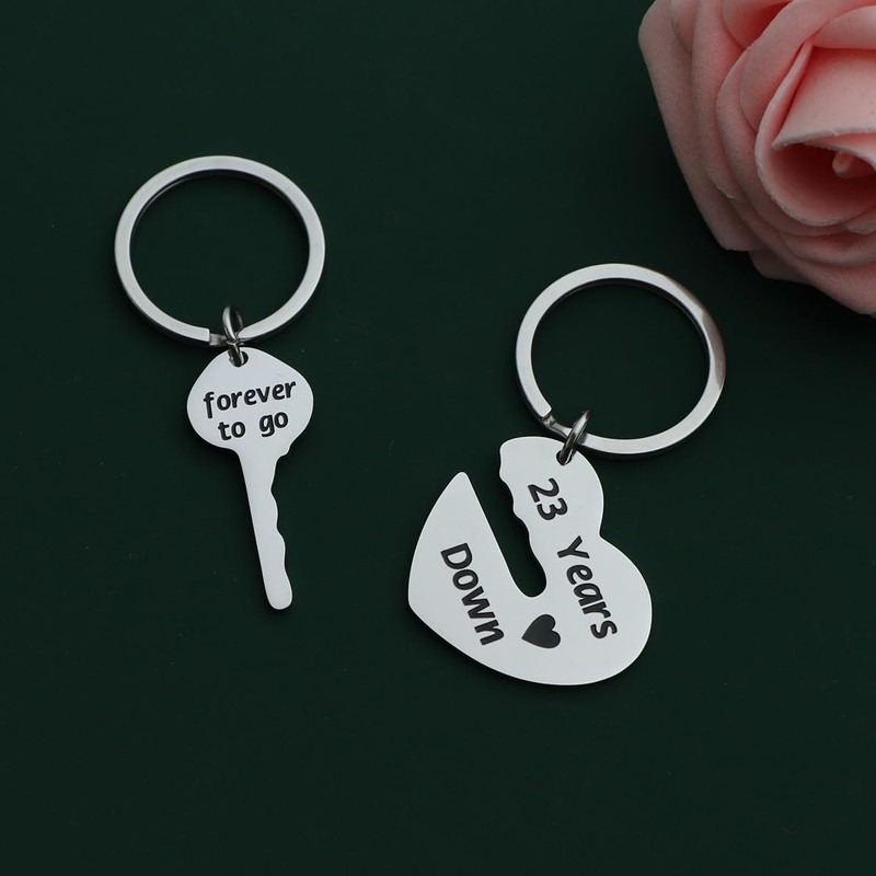Eilygen Couple Gift 2PCS Matching Couple Keychains 11th 21th Wedding Anniversary Key Chain Gift for Him and Her (23 Years Down Forever to Go)