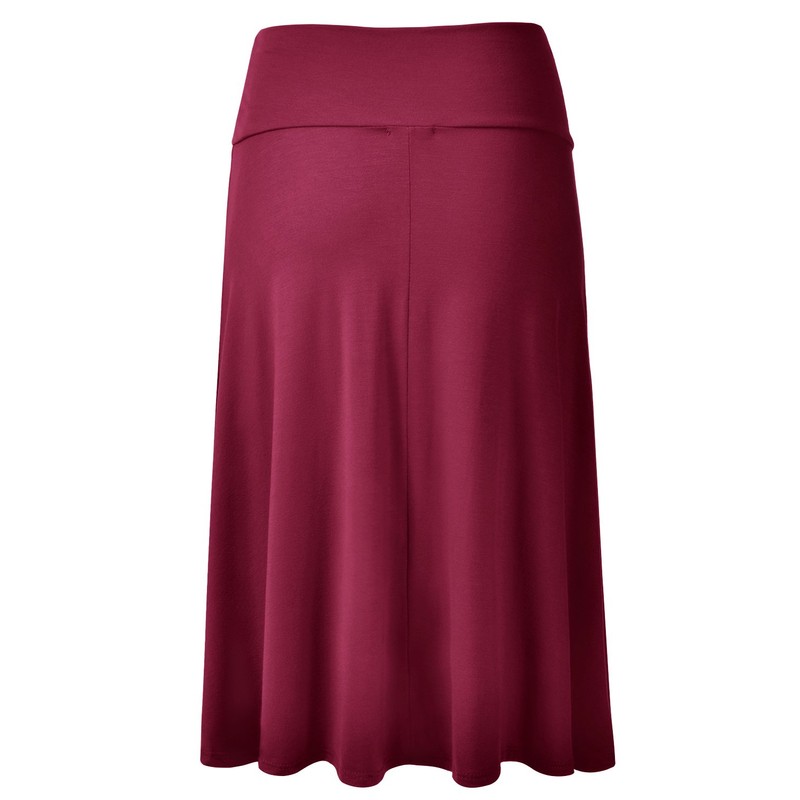- Lightweight Classic Solid Flared Loos Fit Knee Length Skirt with Banded Elastic Waist