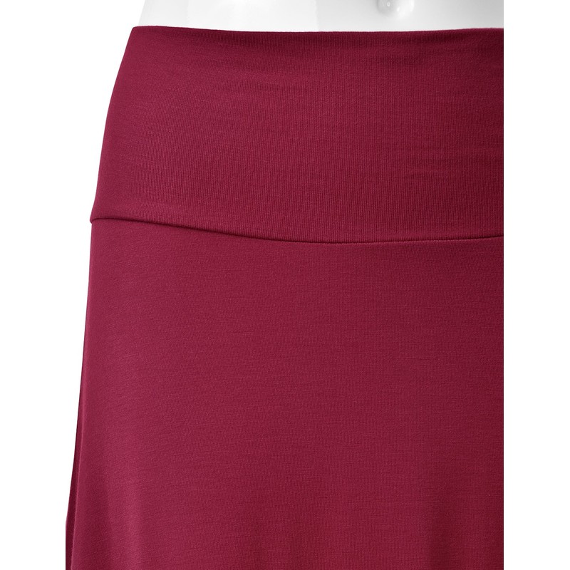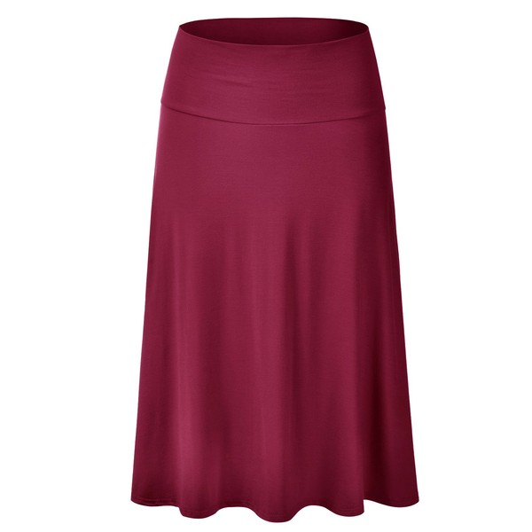 EIMIN Women's Solid Flared Lightweight Elastic Waist Classic Midi Skirt Burgundy L