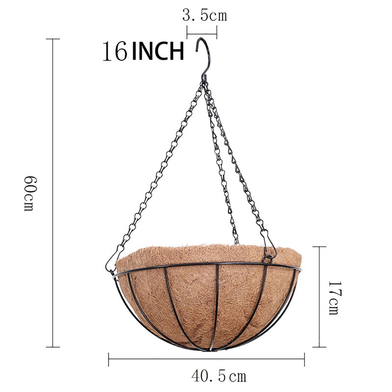 Material: The metal hanging planters basket has the strong metal construction. Its chains and hook are coated with tough black vinyl coating, protecting the wall from scraping, rustproof and safe to use outdoor.All the liners are made from natural coconut fiber, which has good air permeability.
