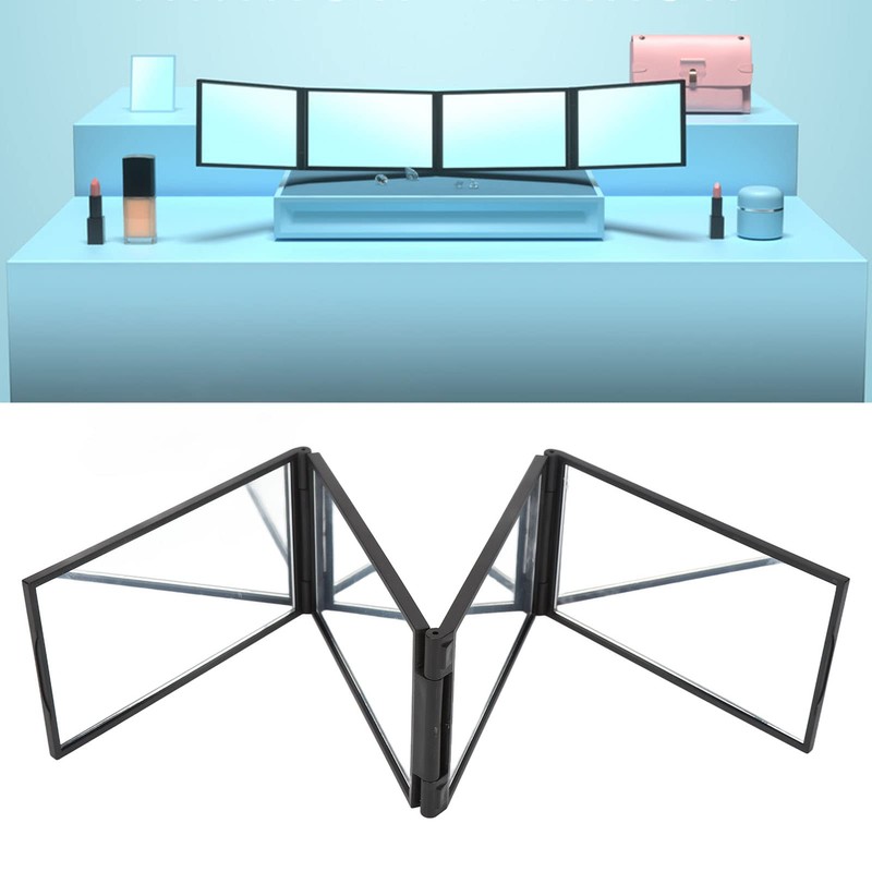EIMSOAH EIMSOAH 4 Way Mirror, 4 Panel Expandable Mirror 360 Degree Handheld Desktop Portable Foldable Makeup Mirror,Plastic Frame Multi Faceted Makeup Mirror for Self Hair Cutting