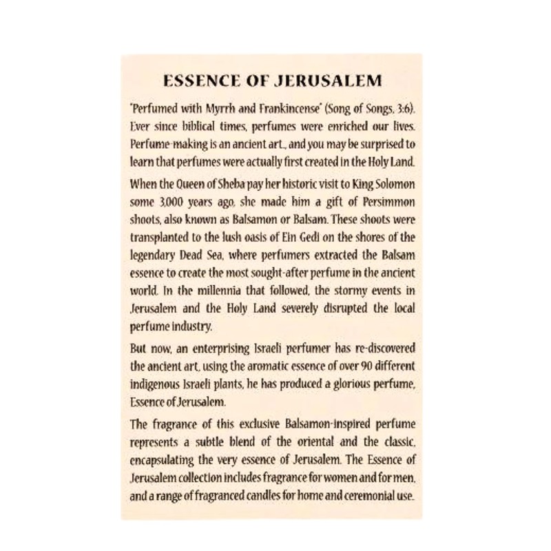 - PERFECT GIFT FOR HIM: Whether For A Special Occasion Or Just Because, The Ein Gedi Essence Of Jerusalem Eau De Parfum Makes A Thoughtful And Unique Gift. Its Elegant Packaging And Distinctive Scent Will Be Cherished By Anyone Who Appreciates The Deeper Meanings And Connections To The Holy Land.