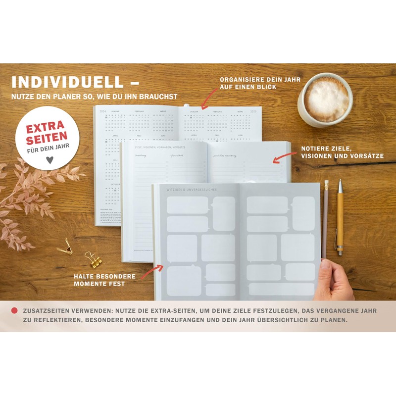 - A whole year: discover our undated weekly calendar with heart - your key to more mindfulness and stylish organisation!