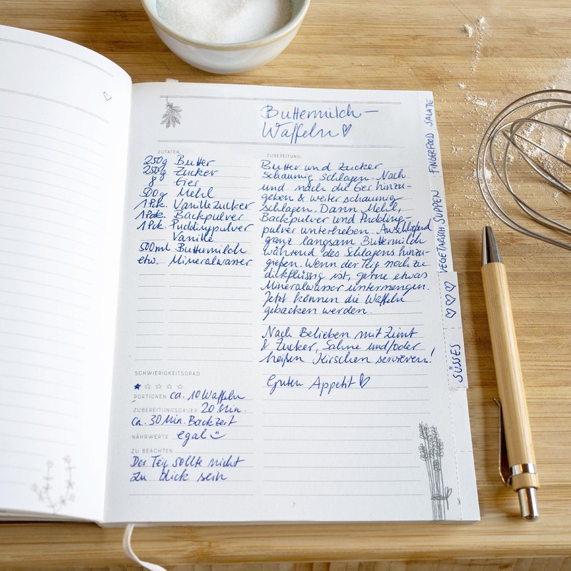 Tip: Also great as a wedding gift! Let all guests write a recipe before the wedding (alternatively one organises the recipes by email), and help the wedding couple on the culinary side of the great new life!