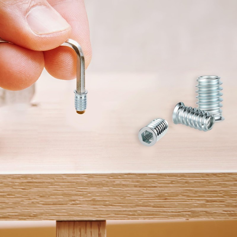 - Designmerkmale: Die Gewideeinsetz Holz zeichnen sich durch ein einzigartiges Außengewinde und Innengewinde aus, das bei der Verbindung von Holzmöbeln für Torsions- und Vibrationsbeständigkeit sowie Stabilität sorgt. Selbst bei hohen Vibrationsfrequenzen rutschen die Einsätze nach der Montage nicht leicht aus.