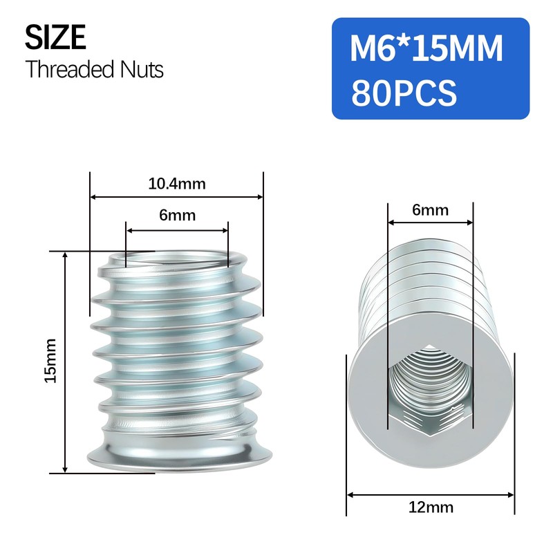 - Verpackung Menge: 80 Stück M6x15 Eindrehmuffe und 1 Stück Entsprechende Sechskantschlüssel.