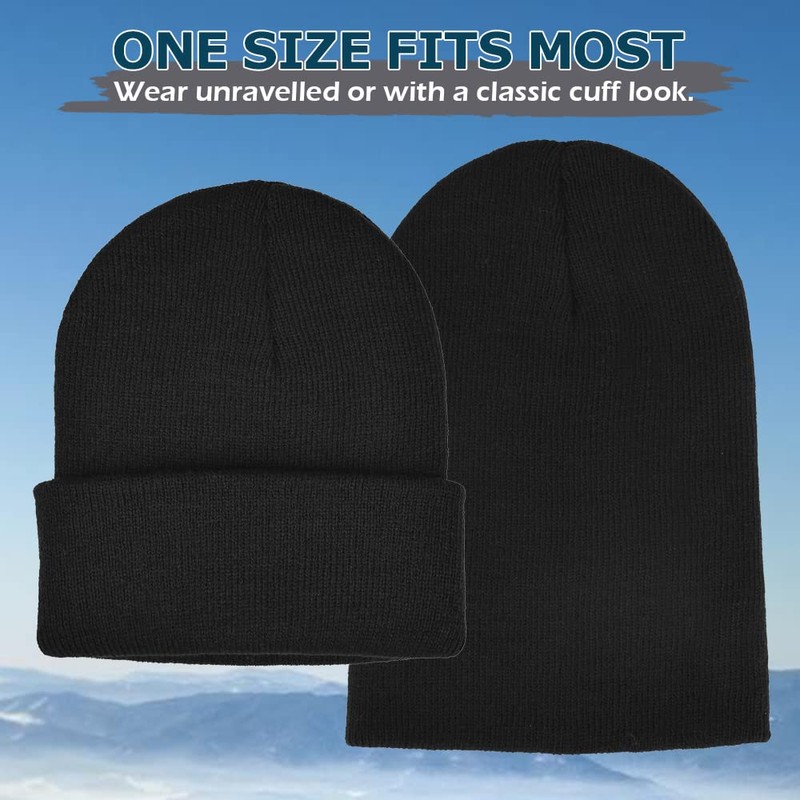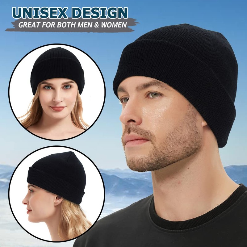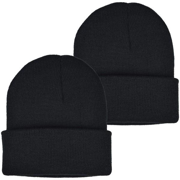 EINSKEY Cuffed Beanie Hat, 2-Pack Unisex Classic Slouch Knit Hat Stretchy Soft Thick Warm Winter Daily Skull Cap Watch Cap