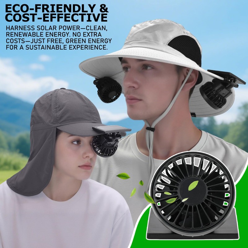 EINSKEY Solar Hat Clip Fan, 2-Pack Portable Mini Fans with Dual Power (Solar & Battery), Hands-Free Cooling Fan for Outdoor Hiking Golf Fishing Sports - Great for Kids & Adults (Black)