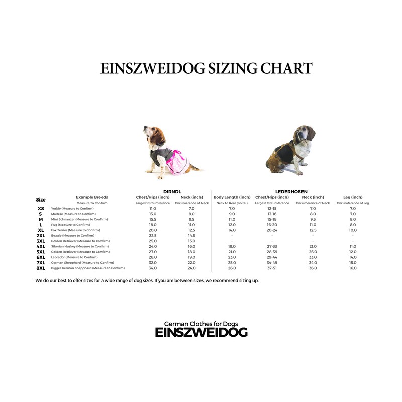 EINSZWEIDOG Oktoberfest German Dog Lederhosen, Multiple Sizes (8XL)