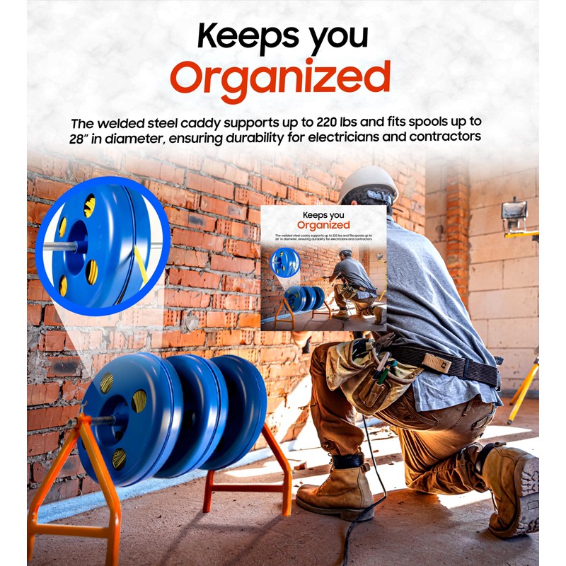 EIP Portable Wire Reel Coil Dispenser/Storage for NM Wire - BX - Cord - Flex Cable. REEL ONLY