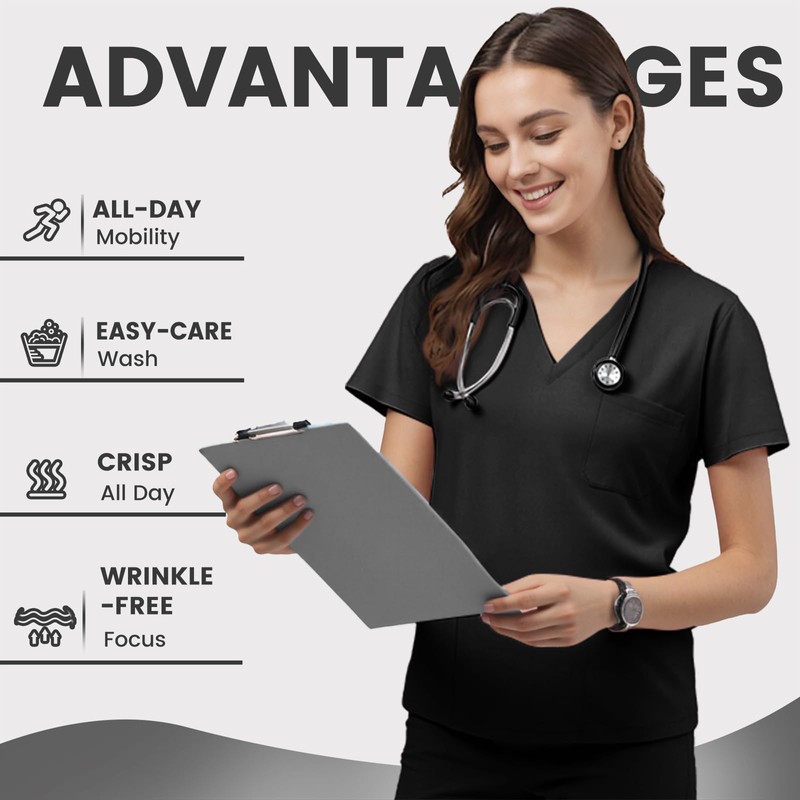 - VERSATILE PROFESSIONAL WEAR: Transition seamlessly from clinical duties to downtime. The soft fabric, thoughtful design, and comfortable stretch make this top equally suitable for demanding shifts and relaxed moments after work