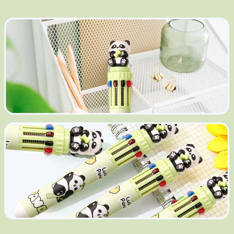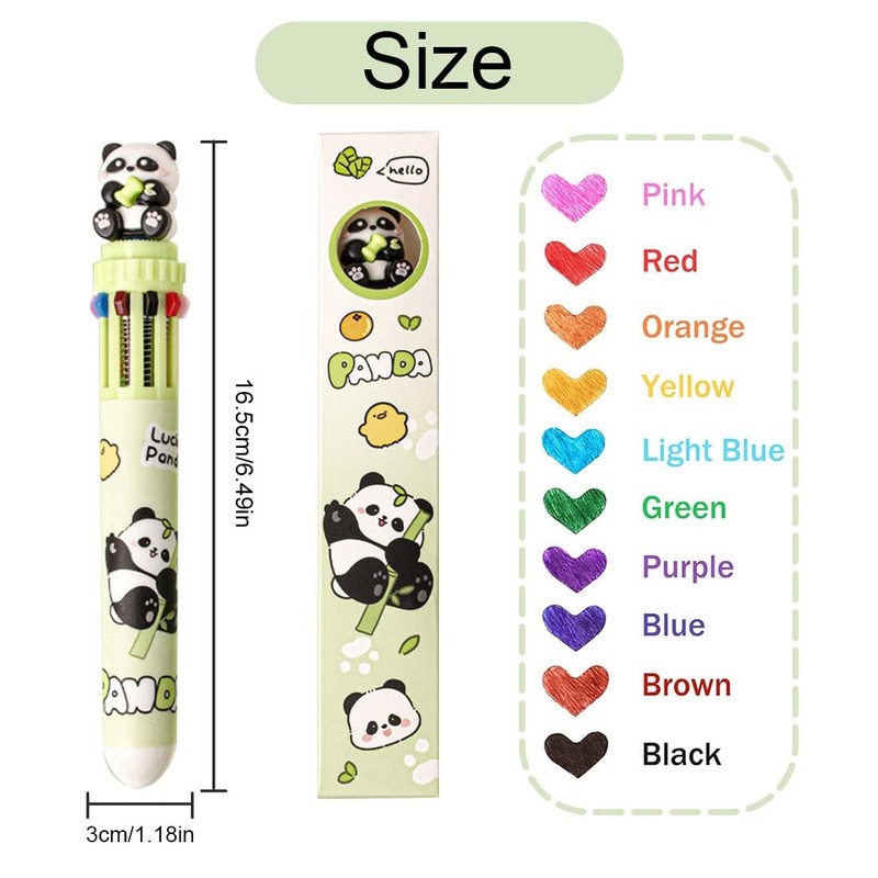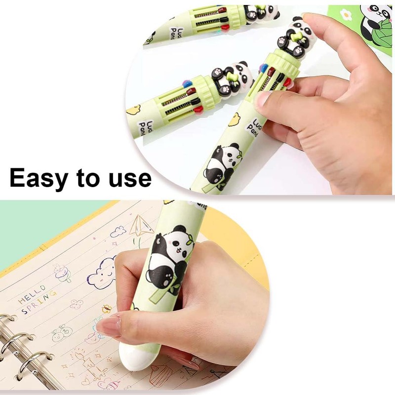 EIR Multicoloured Retractable Ballpoint Pen, 10 Colours, Funny Pens, Panda, Multicoloured Ballpoint Pen, 10 in 1 Retractable Ballpoint Pen, Colour Changing Pen, Care Accessories, Small Gifts for