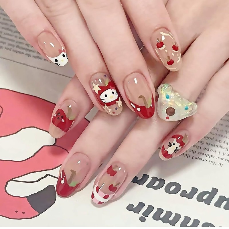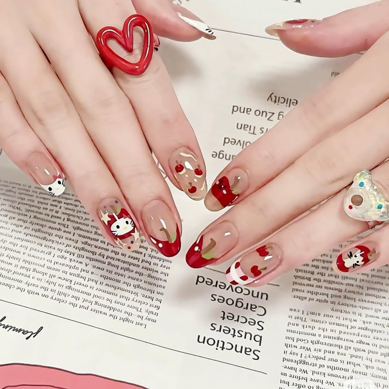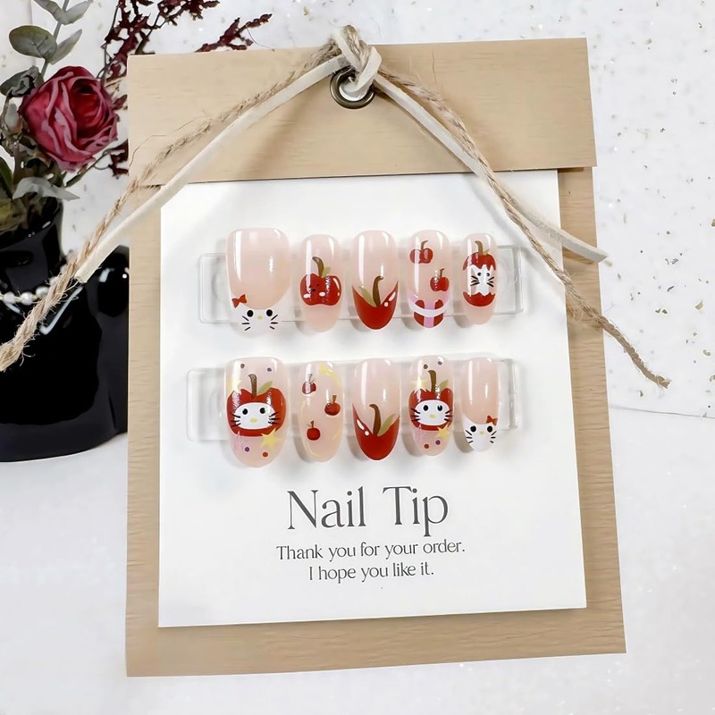 EIROVYA Press on Nails Fake Nails Nails Press ons Klebenägel, Roter Apfel, 20 Stück