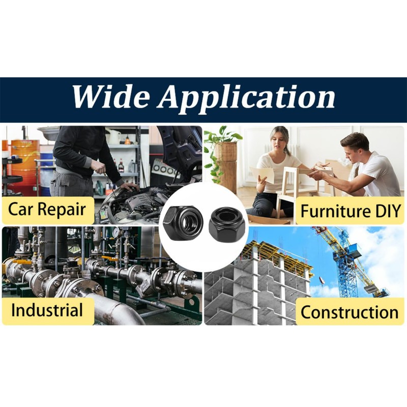 - [Feature] - With a nylon insert, these lock nuts greatly reduce loosening under vibrations and torque after long-term use, and have a good fastening effect.