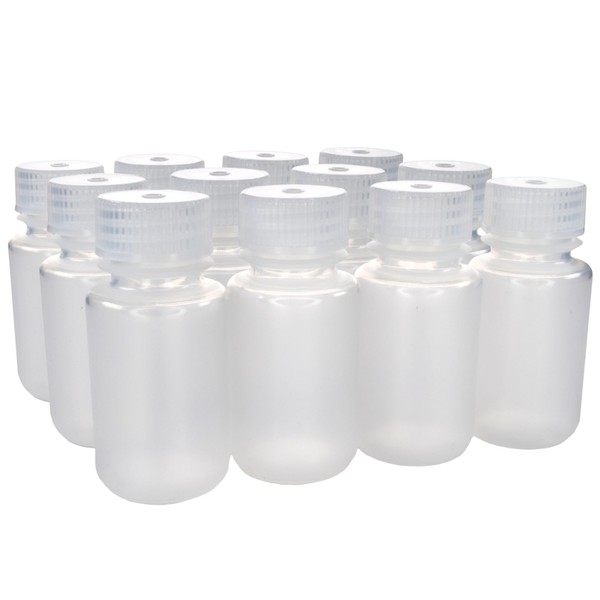 • PACK OF 12 WIDE MOUTH REAGENT BOTTLES || Includes twelve 60mL translucent polypropylene bottles with wide mouth openings and polypropylene caps for convenient laboratory and industrial use.