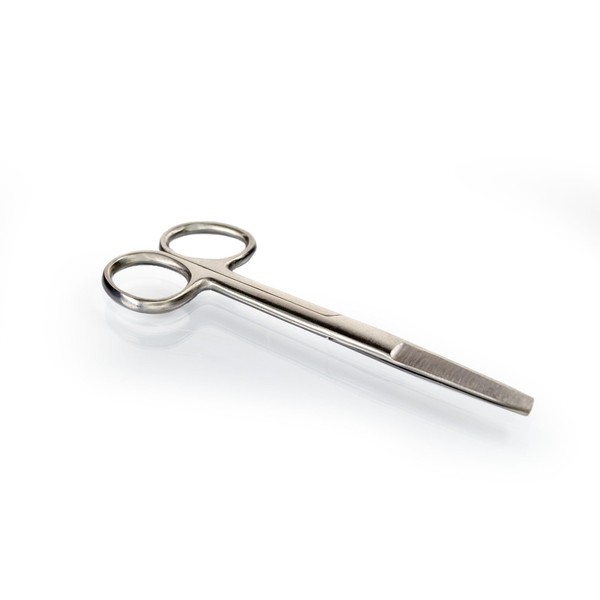 - BLUNT-END SCISSORS || A single pair of dissecting scissors with blunt tips and straight blades, measuring 125mm (5 inches) in overall length, made for dissection and handling