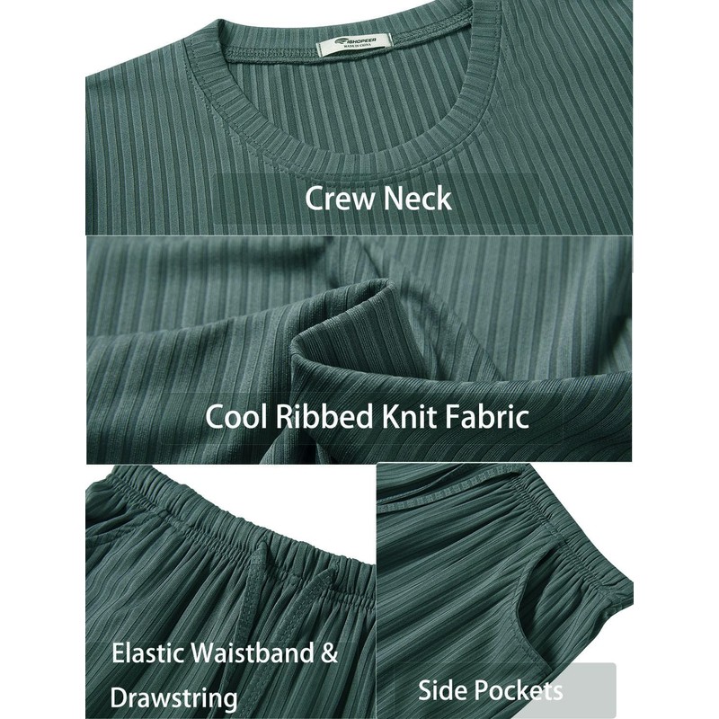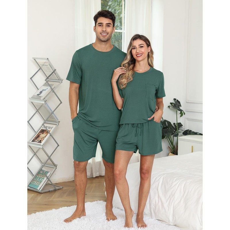 • Feature: Couples 2 Piece Lounge Sets,, Loose ribbed pajama sets, Crew neckline matching outfits sets, Short sleeve Tops, Adjustable drawstring shorts with pocket, simple and comforty for your leisure time. Experience ultimate relaxation in our Ice Silk Ribbed Weave Sleepwear, crafted with a unique combination of temperature-regulating ice silk and a cozy ribbed texture.