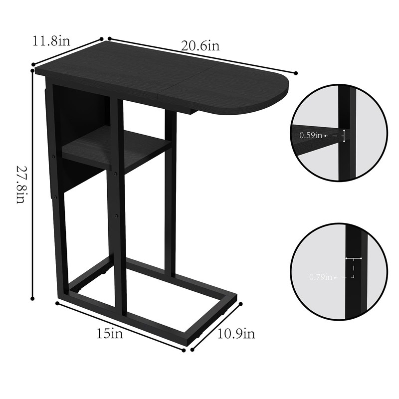 • Saving Space: The C-shaped end table design makes it easy to slide under the bed or sofa, making it easy to use and space-saving. And the table top is extended with two wooden boards