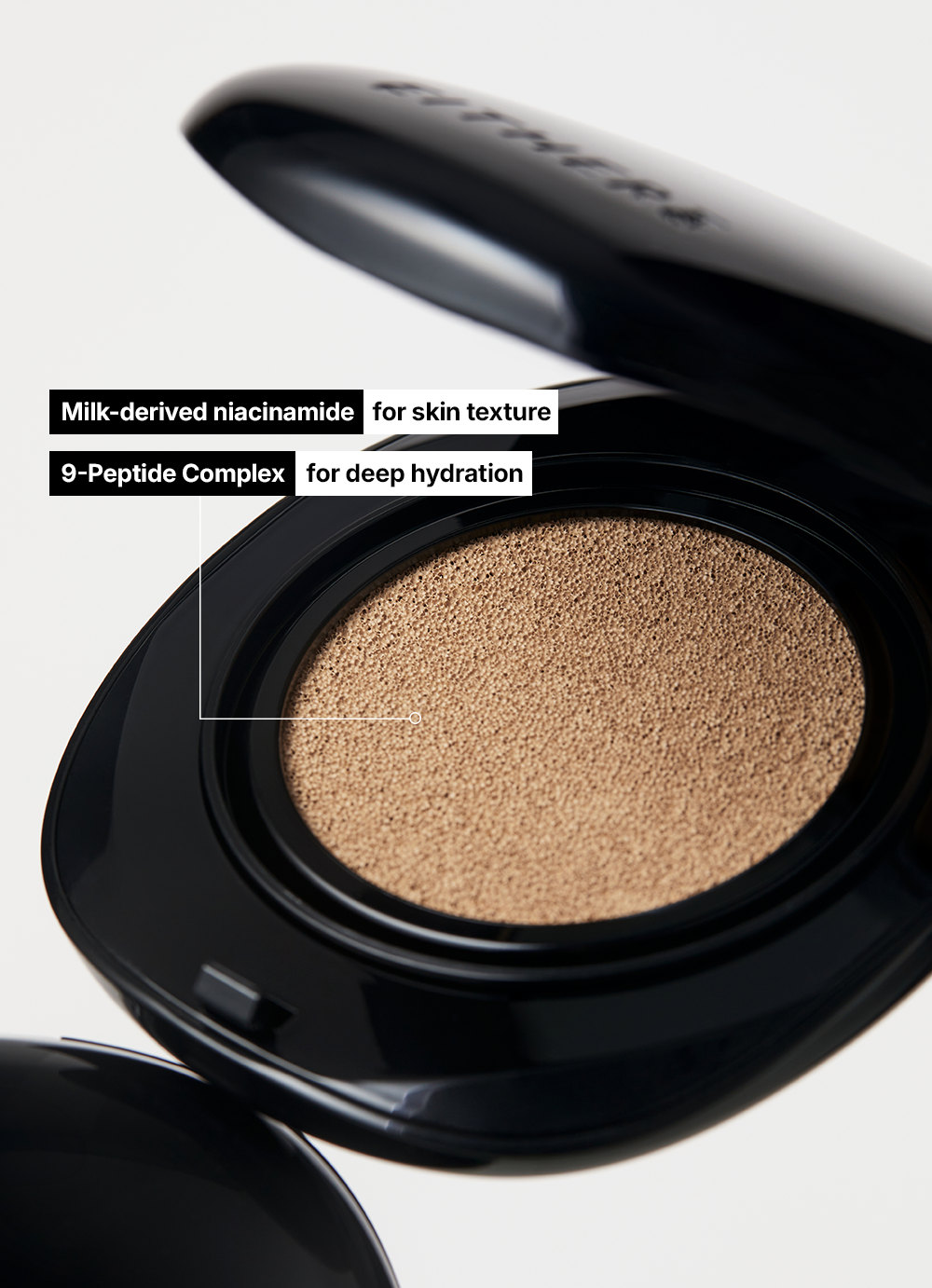 Infused with priming powder in a moisture essence base to seamlessly cover pores and uneven texture for a refined finish. Contains milk niacinamide to help improve skin texture and tone, and a 9-peptide complex to provide hydration and elasticity care. Formulated with sebum-cut powder and vitamin E to reduce oxidation caused by excess oil, keeping the complexion bright without dullness.
